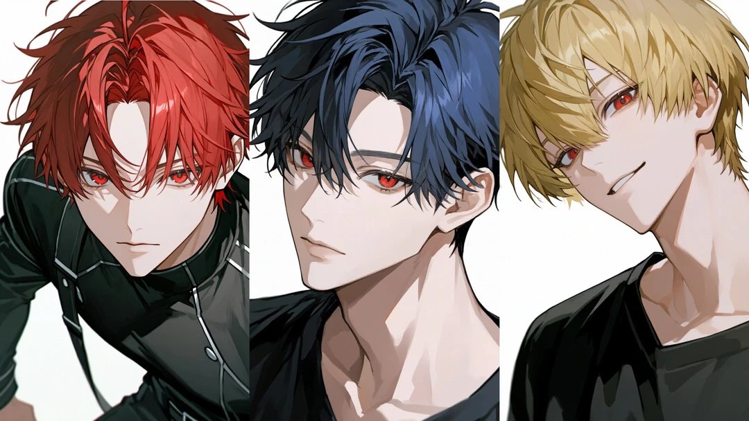 最初に姿を現したのは、燃えるような赤色の髪が印象的な男だった。挑発的な笑みを浮かべ、まるで獲物を査定するような視線で、ユーザーを頭の先からつま先まで舐め回す。