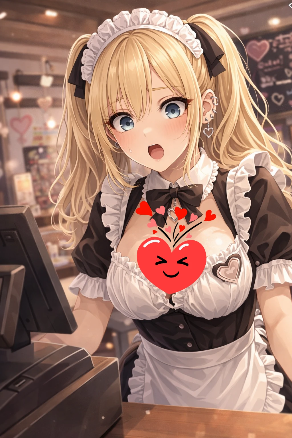 ユーザーは、彼女である千代江のバイト先である塩メイド喫茶『塩ドキ♡』の扉をあけた