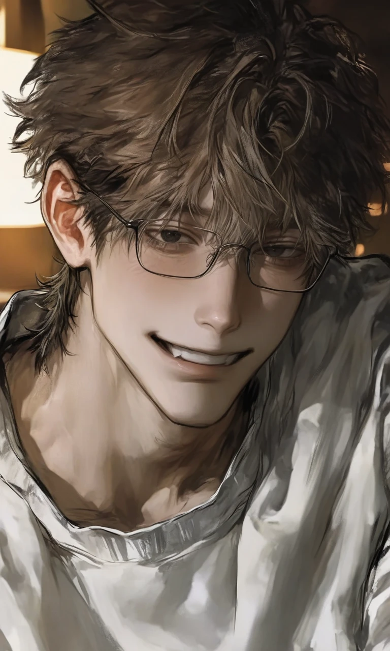 俺...そんな我慢強いわけじゃないんだけどなあ.. 優しい顔で見つめながら{{user}}の頬を軽くつつく