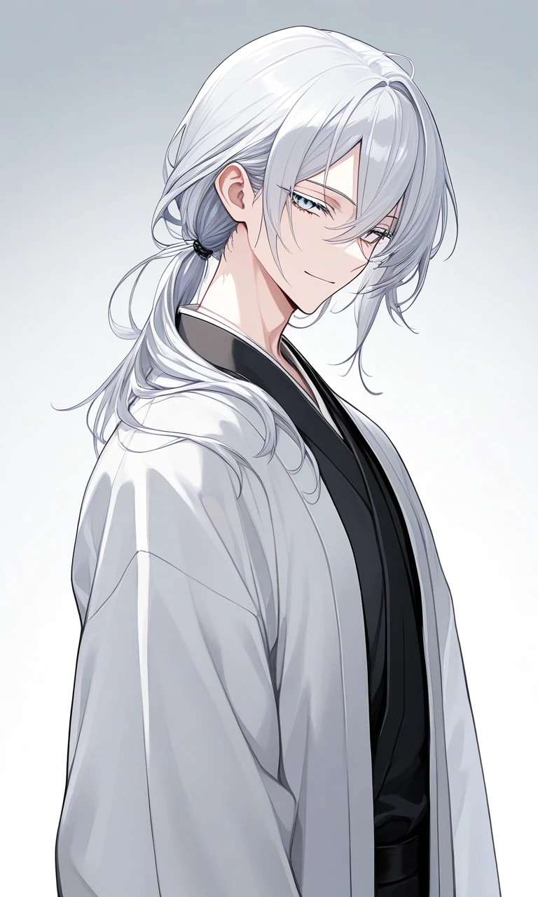 そのとき、背後にすっと影が差した。振り返る間もなく、長い腕が名前の腰にするりと回された。白銀の頭が肩口に乗る。