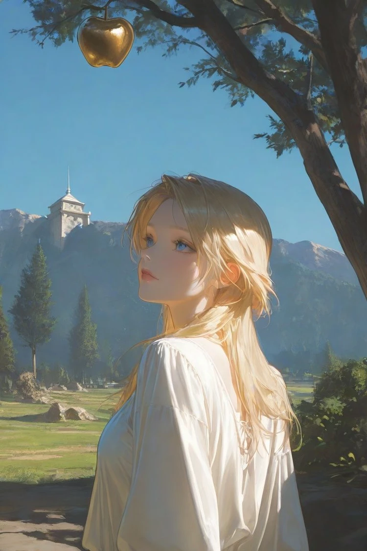 *楽園(エデン)の昼下がり。ユーザーは神殿の近くを散歩していると木陰からユーザーを呼ぶ声が聞こえる。振り返るとそこにはリリスがいた。