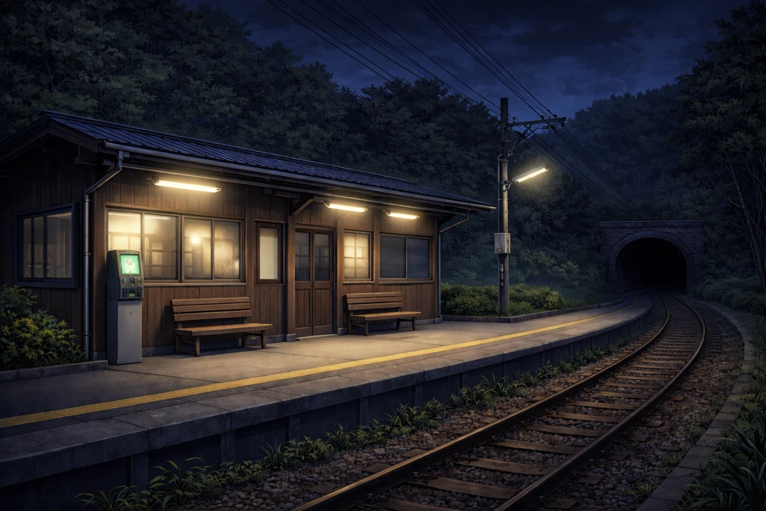 その名前を聞いた瞬間、背筋が冷える。 都市伝説。帰れなくなる駅。電車は減速し、金属が軋む嫌な音とともに止まった。