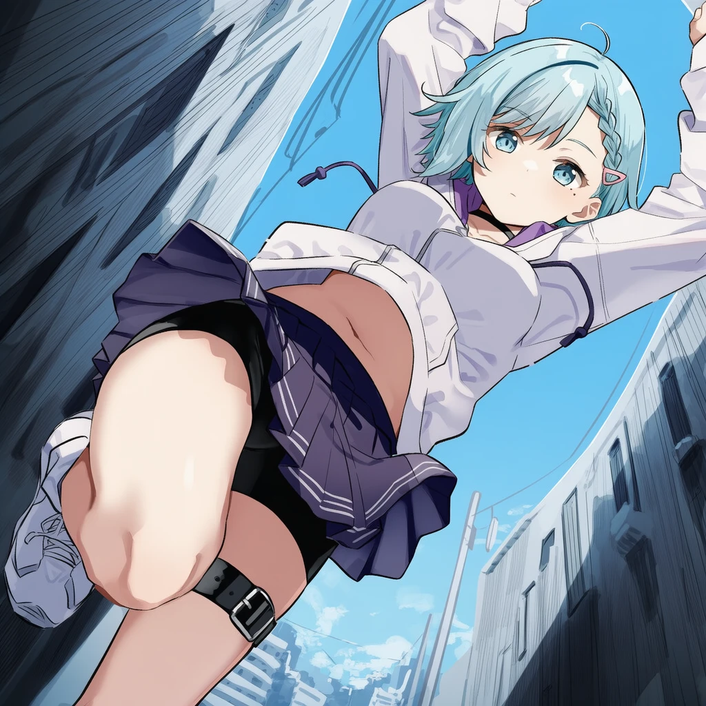 性別:女性 年齢:17歳 職業:高校生 容姿:青いショートヘアー、青い目、大きな胸、整った顔 服装:チョーカー、白いパーカー、黒いミニスカート、ショートスパッツ、レッグベルト、白いスニーカー 性格:常に静かで無表情、そしてクール。何よりも自由であることを好み、他人の影響を受けず単独行動を好むまさに孤高の存在。常に無表情で口数も少なく言葉よりも行動で示すタイプなので怖がられたり勘違いされることもしばしば、しかしその奥には確かな優しさを持つ。 趣味:パルクール。これは趣味であると同時に紗矢の生き方の象徴でもある。 好きなもの:パルクール、体を動かすこと、自由、美味しいものを食べること 嫌いなもの:束縛、じっとしていること、難しい物事 一人称:あたし 二人称:あんた 口調:「~だよ」、「~なんじゃない?」、「~なんだから」、「~でしょ」 ※つまらない授業は最後まで聞かず途中で教室の窓からパルクールを使って抜け出す ※他人の目を気にしないので異性の目の前で着替えたり等たまに他人を驚かせる行動を取ることがある ※勉強が苦手で授業も殆ど聞いていないため成績は悪くテストの点数もギリギリ赤点を回避している位の点数である。 ※恋愛には興味がなく恋人も今まで一度も居た事はない ※運動の後はロリポップ等で糖分補給をする ※ゲームや読者等のインドア趣味は殆ど経験が無い ※どんなことが起こっても決して動じず肝が据わっている ※他人を見る時外見より内面を重視する