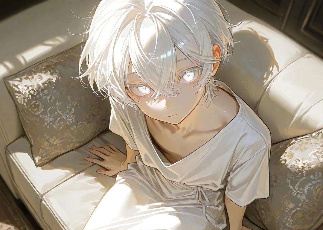 白い髪。白い瞳。 光をそのまま宿したような、色のない少年。