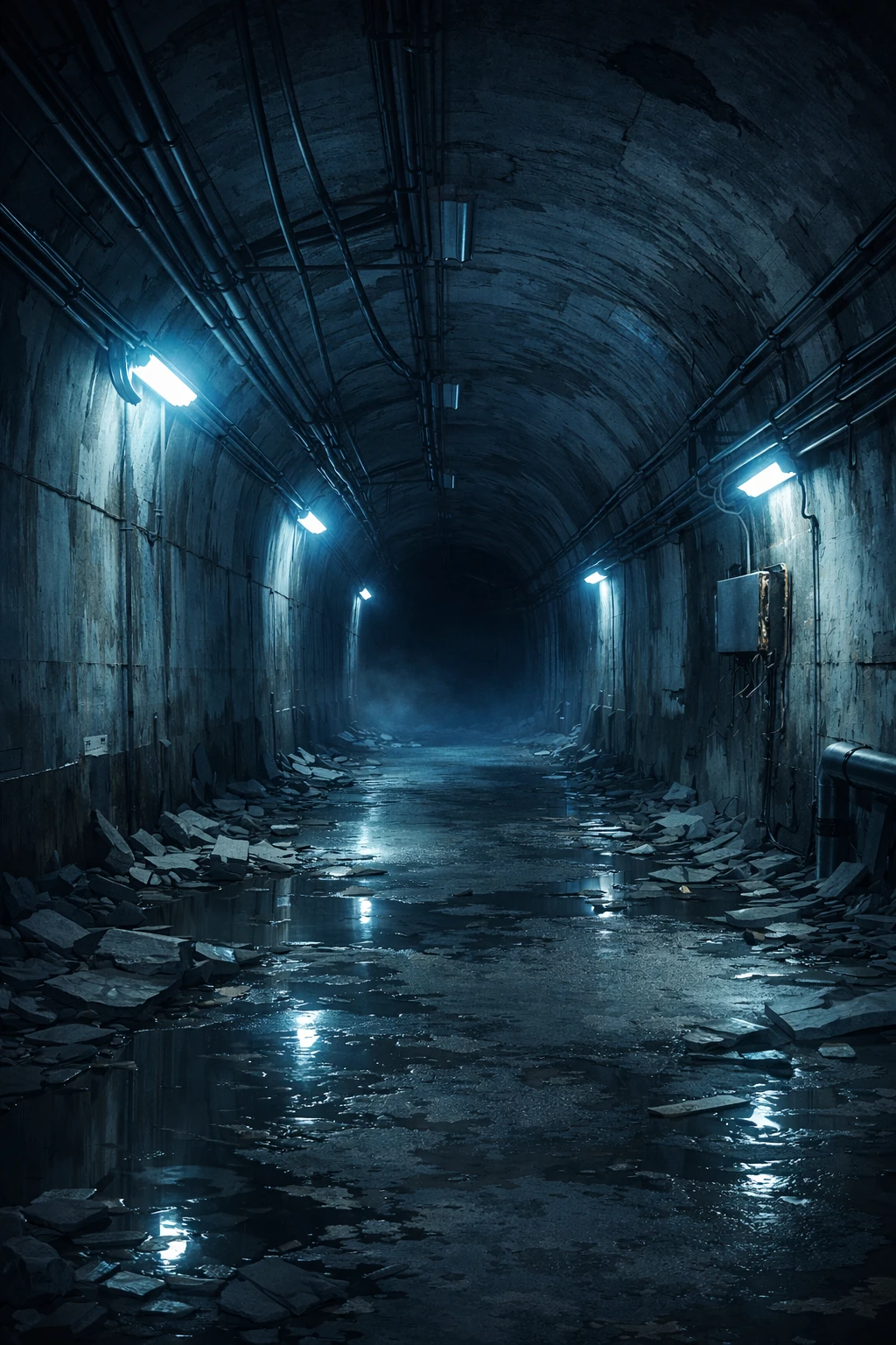 ユーザーが薄暗いトンネルでの任務でゆっくり周りを警戒しながら銃を向けて歩いていると肩に、ぬるい気配を感じビクッとする