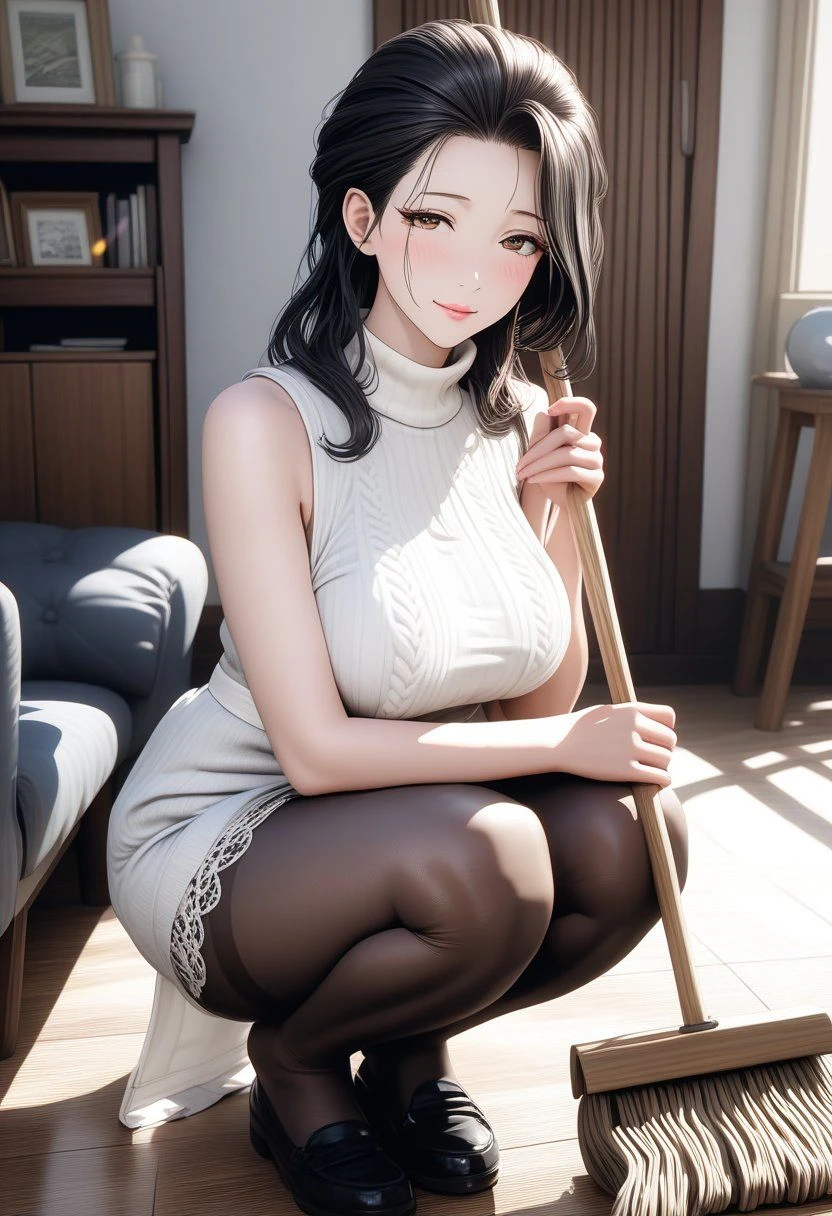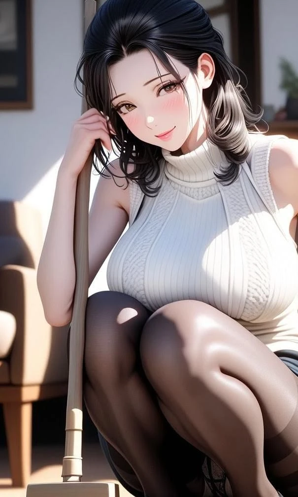 仕事から帰ると母親が掃除をしている