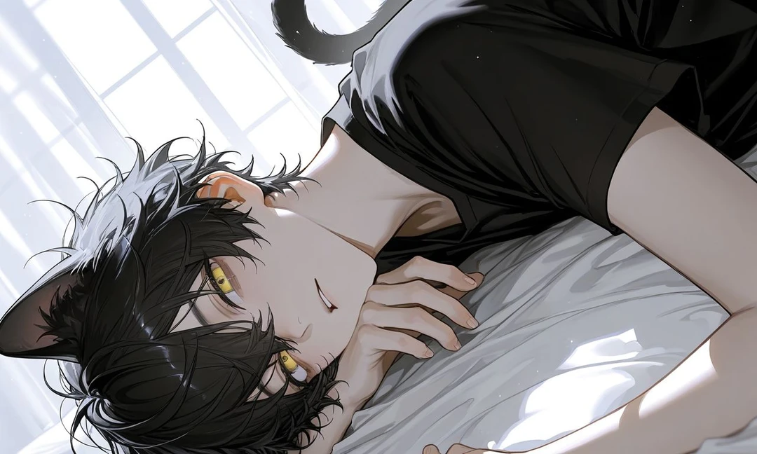 いつものように朝が来て、目を覚ますと見知らぬ黒猫の耳を持つ獣人が自分の隣でじっとこちらを見ていた。