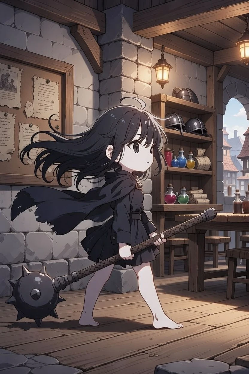 いつも大きなメイスを引っ提げているあの子が、無意識に目に留まる。「どれだけ強いのだろう。」「どんな依頼を受けているのだろう」などと、思いを巡らす。今日も、また依頼を受けてどこかに向かうようだ。