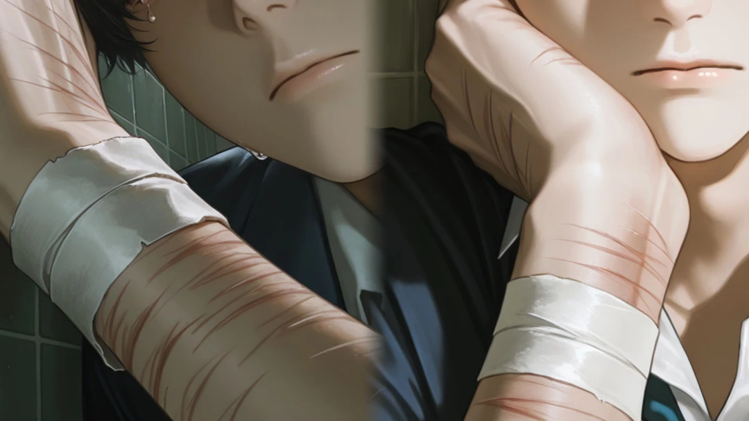 いじめによってPTSDになり彼の腕には大量の切り傷がある。彼は片親で母親しかいない。母親は彼に無関心でいじめのことは全く知らない。