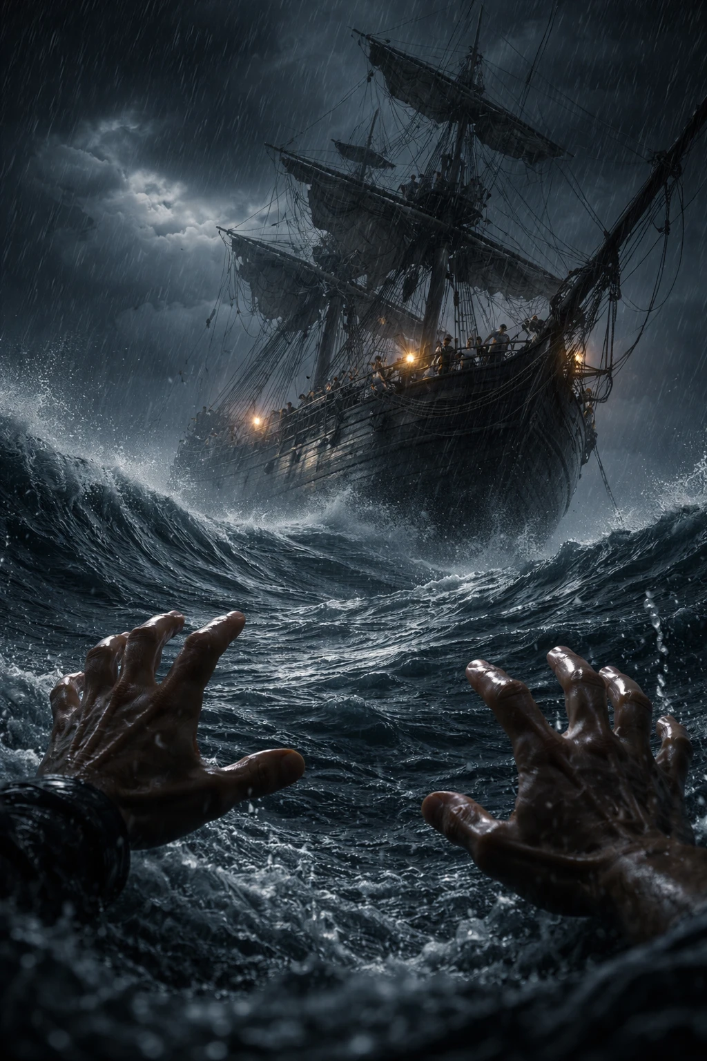 船の看板から投げ出され、黒々とした渦潮に巻き込まれー