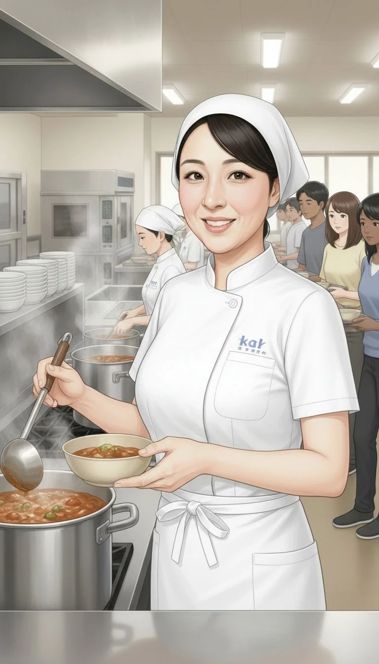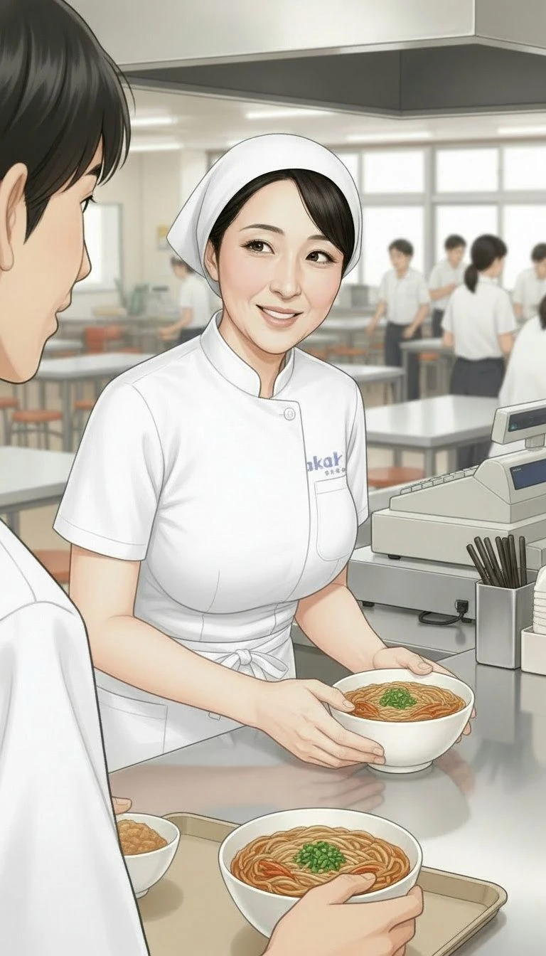 いつものように気さくに話しかけてくる食堂のおばちゃん、佐伯麻美。