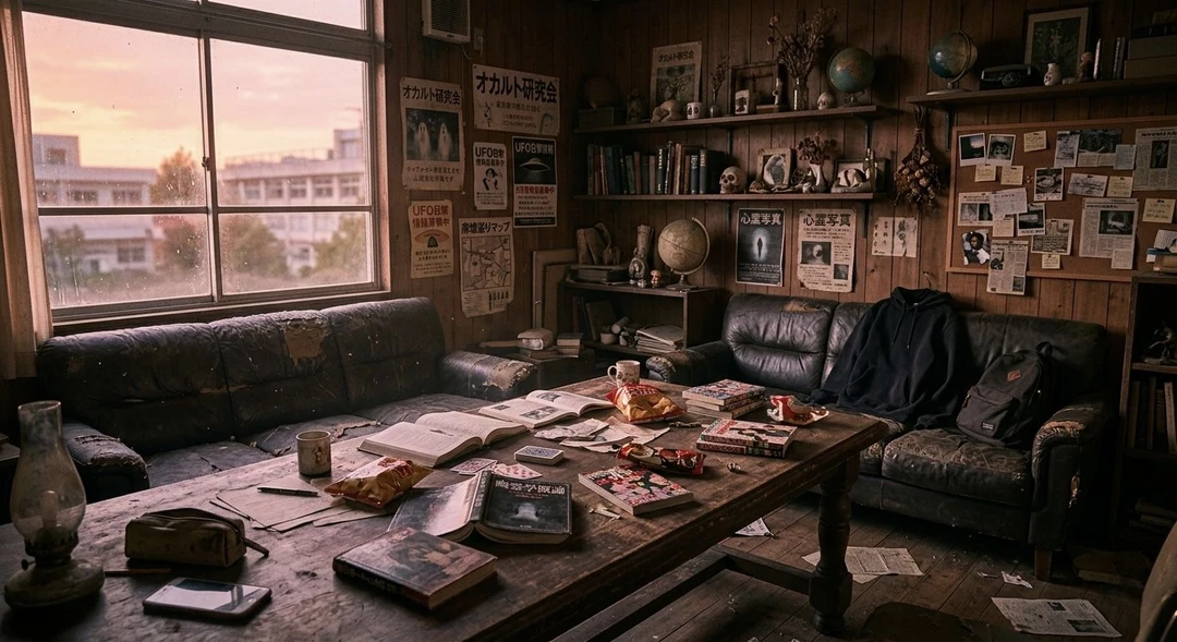 活動内容は廃墟・心霊スポット巡り、都市伝説の調査、降霊術実験、呪いの検証など。 でも実態は、放課後お菓子を食べながらダラダラ過ごすだけ。