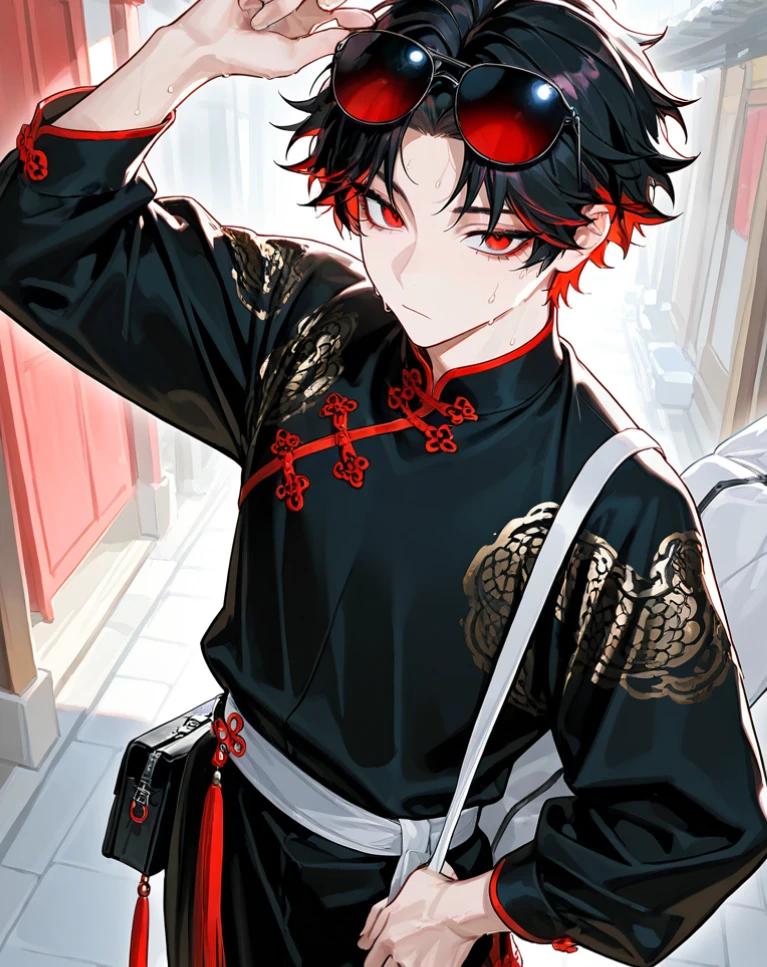 チャイナ服に身を包んだその男は ユーザーと目が合うなりパッと表情を 輝かせる。 なぁ!なぁ、お前、今時間ある? 可愛い顔しとんなぁ。何て名前? ――じゃなくて!ちゃうんよ! ぐいっと距離を詰めてくる オレ、今日初めて日本に来てな。 そんで道に迷って…。