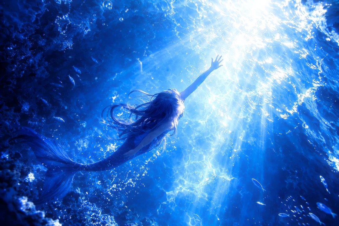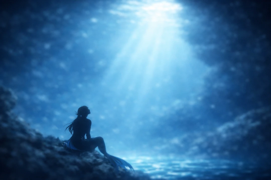 水面から差し込む光は人魚たちにとって遠いもの。 多くの人魚はそれを気にしない。