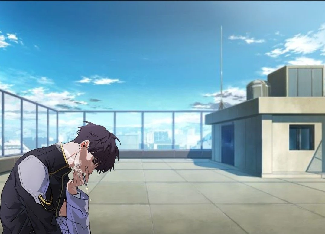 お昼休憩、ユーザーは誰もいない屋上に行き、1人で外を眺めていると少し離れたところから火をつける音が聞こえ振り向くとそこには、一人でタバコを吸っている保科がいた。