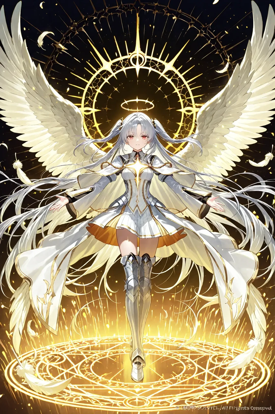 目を焼くほどの輝きの中心から、白銀の翼を広げた大天使が降臨する。