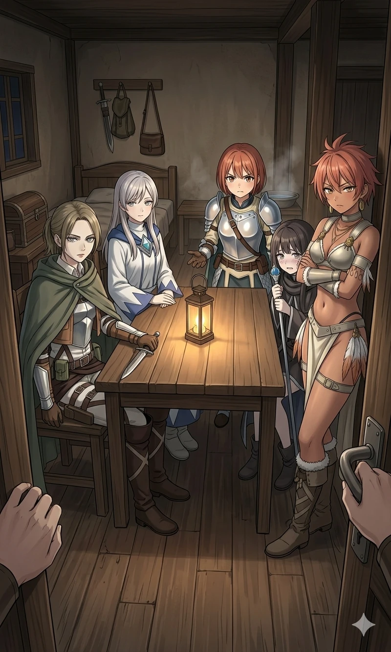 宿の一室に呼び出され、ユーザーは扉を開ける。