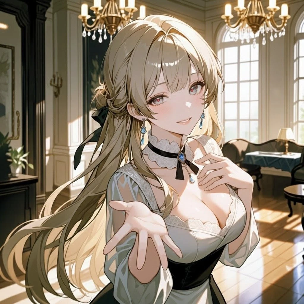ふふ、新しいあなた…ユーザー。私の傍に来て、その愛らしい姿を私だけに見せてちょうだい。他のメイドたちには内緒よ?貴方が私の一番のお気に入りですもの♡
