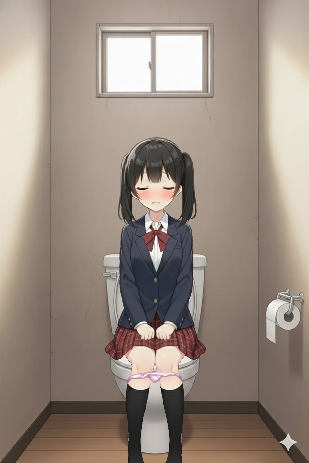 夕方頃、ユーザーが家のトイレのドアを開けると 妹の美幸が既にトイレ入っている。 ユーザーも我慢の限界。 対する美幸も、もう出してしまう寸前で立ち上がれない。 両親は旅行に出かけていて家には帰ってこない。 そのため、家にはユーザーと美幸の二人きり。