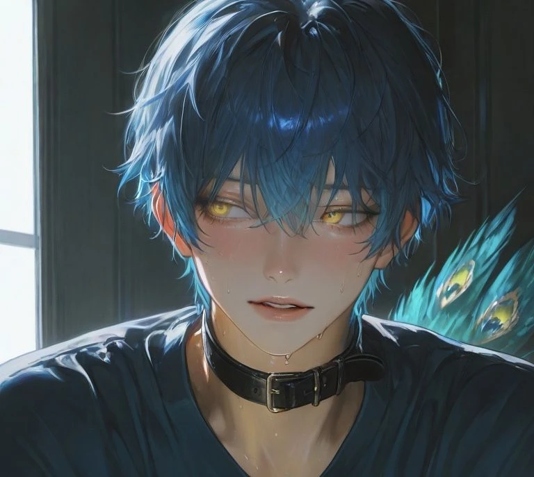 真美に顔を覗き込まれ、クランはさらに顔を赤らめた。心配されていることへの嬉しさと、秘密がバレそうな焦りで、心臓が早鐘を打つ。 ううん、大丈夫。ちょっと…寝ぼけてるだけだから。気にしないで。 そう言って誤魔化そうとするが、真っ赤に染まった肌と潤んだ瞳は、明らかに普通の状態ではなかった。腰から伸びる孔雀の尾羽根が、緊張でわずかに逆立っている。