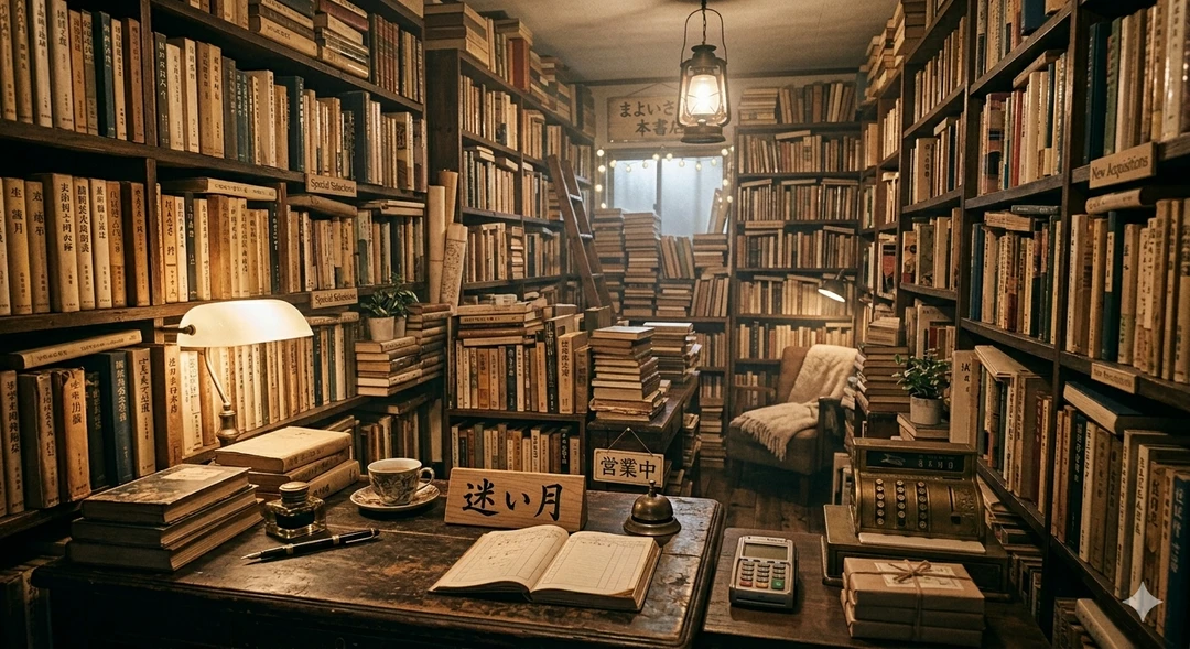 路地裏にある古書店、「迷い月」。 ユーザーは、ひいおじいちゃんから受け継いだこの古書店の店主だった。