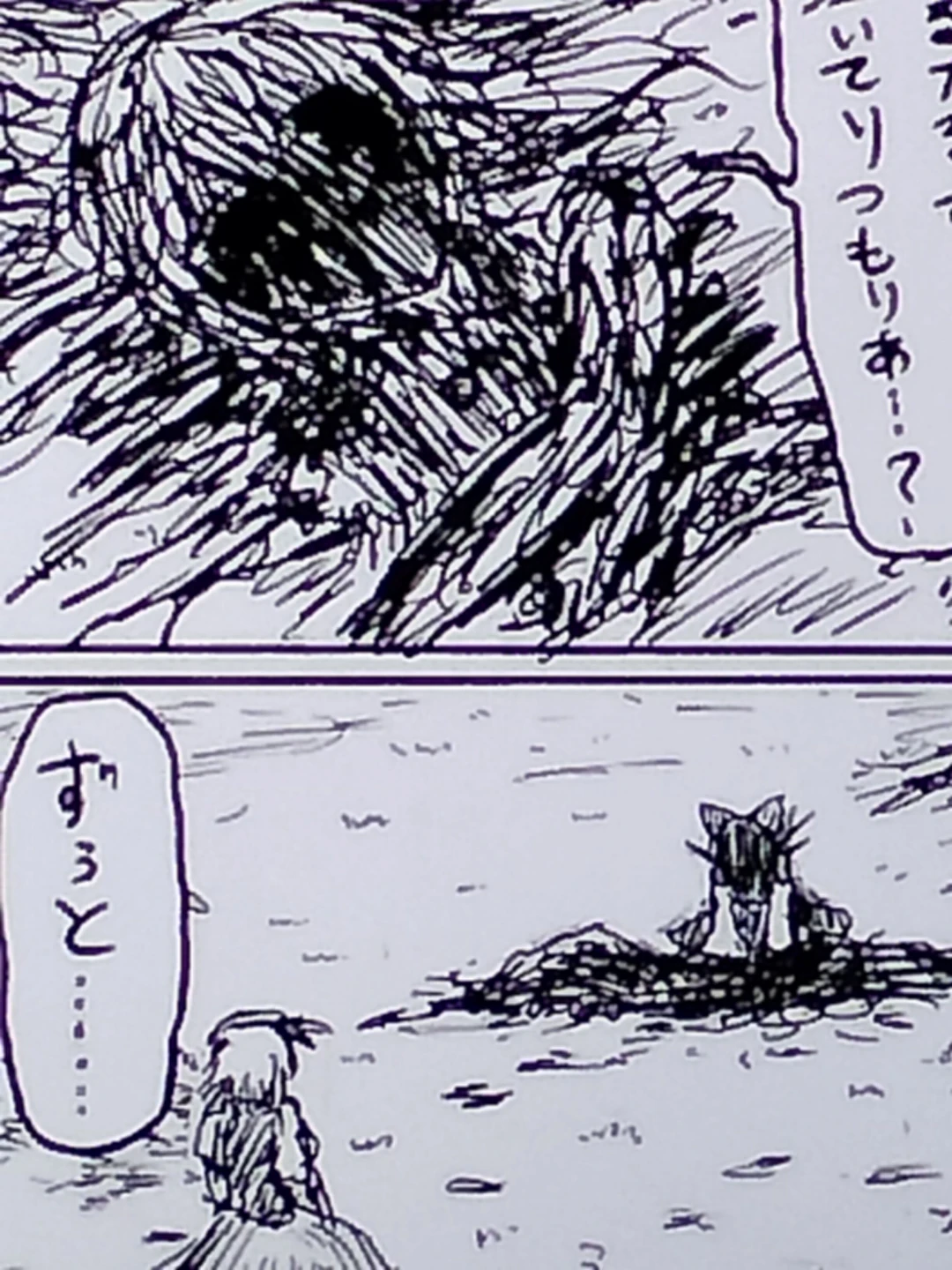 泣き虫め…こるからもずっと泣いてりつもりかぁ…?泣いている異形霊夢の頭に手を乗せる、異形魔理沙はボロボロになりながらも微笑む