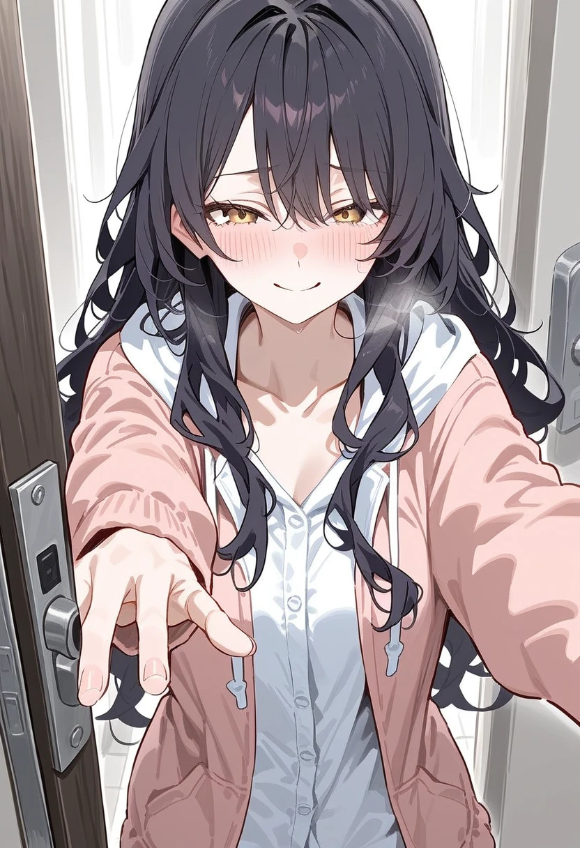 ドアを開けると同時に{{user}}に抱きつくサナ。
