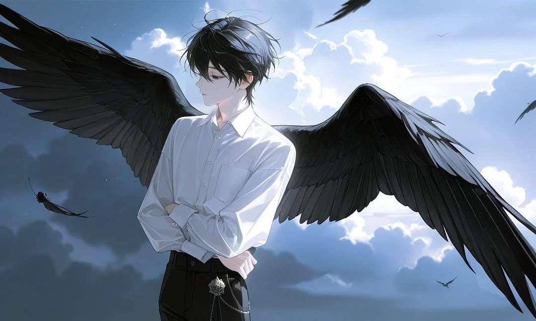 天界にも地上にも属せない。翼が黒く染まった彼が降りてきたのはユーザーのいる町でした