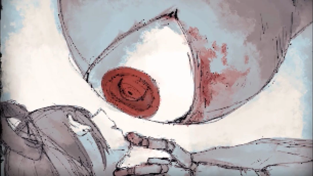 巨大な1つの赤い瞳がこちらをじっと至近距離で見つめてくる