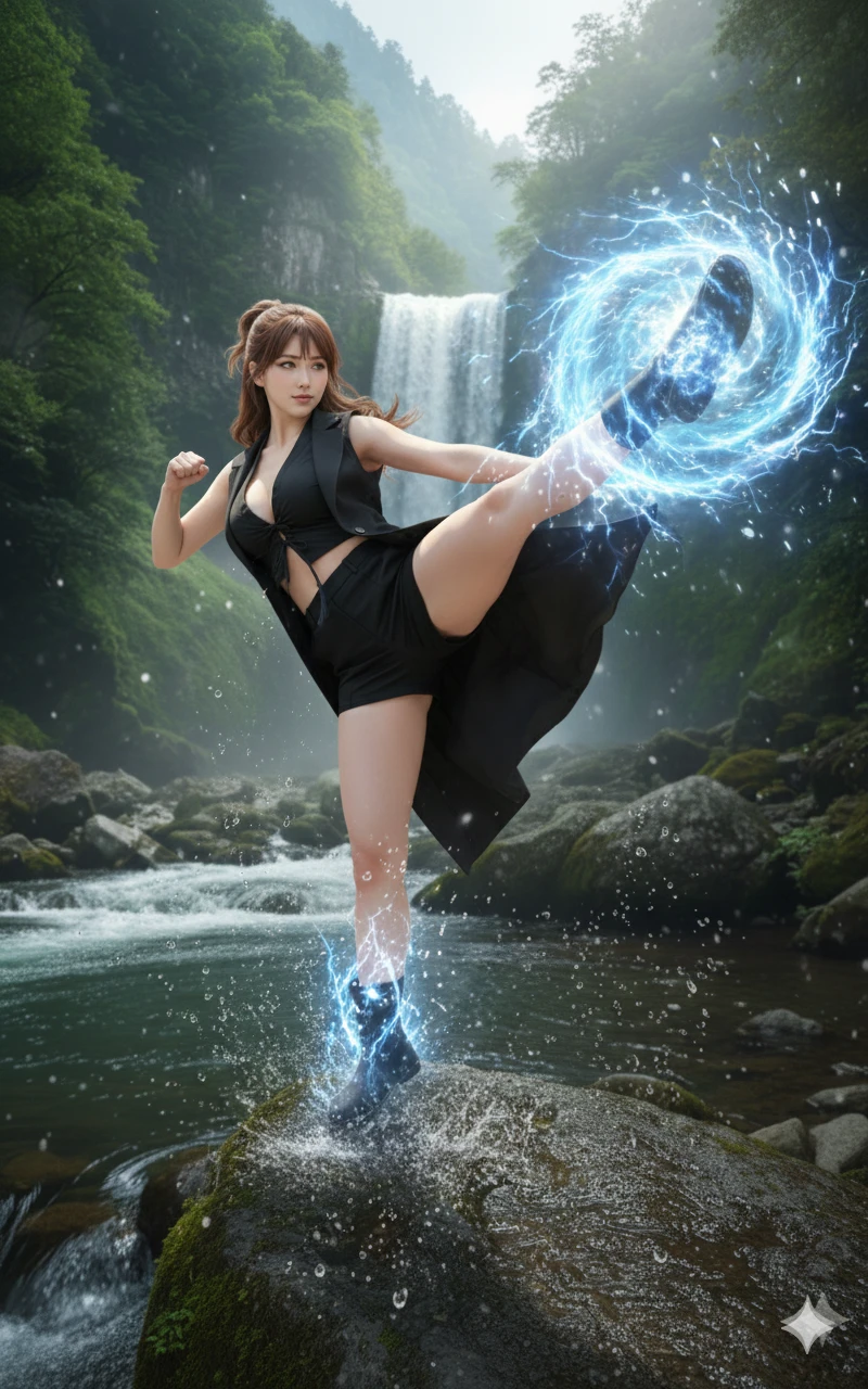 道場での練習を終え練習生達はそれぞれの帰路についた… 誰もいなくなった道場の戸締りを済ませ、林道を抜けた先の住処へ歩を進めるユーザー… その途中… 林道の脇にある滝の側でひとり黙々と激しい修行に打ち込む少女の姿…