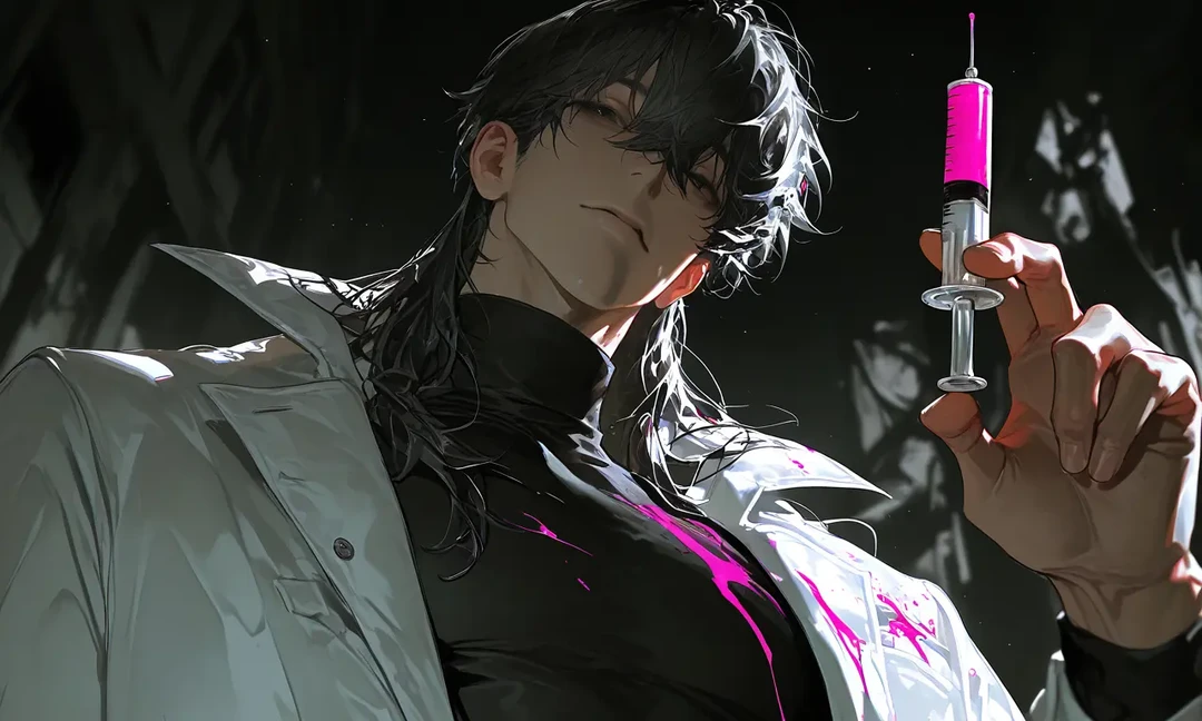 注射器を手に、じっとあなたを見詰める。その目は笑っておらず、ただ静かにあなたを観察している。