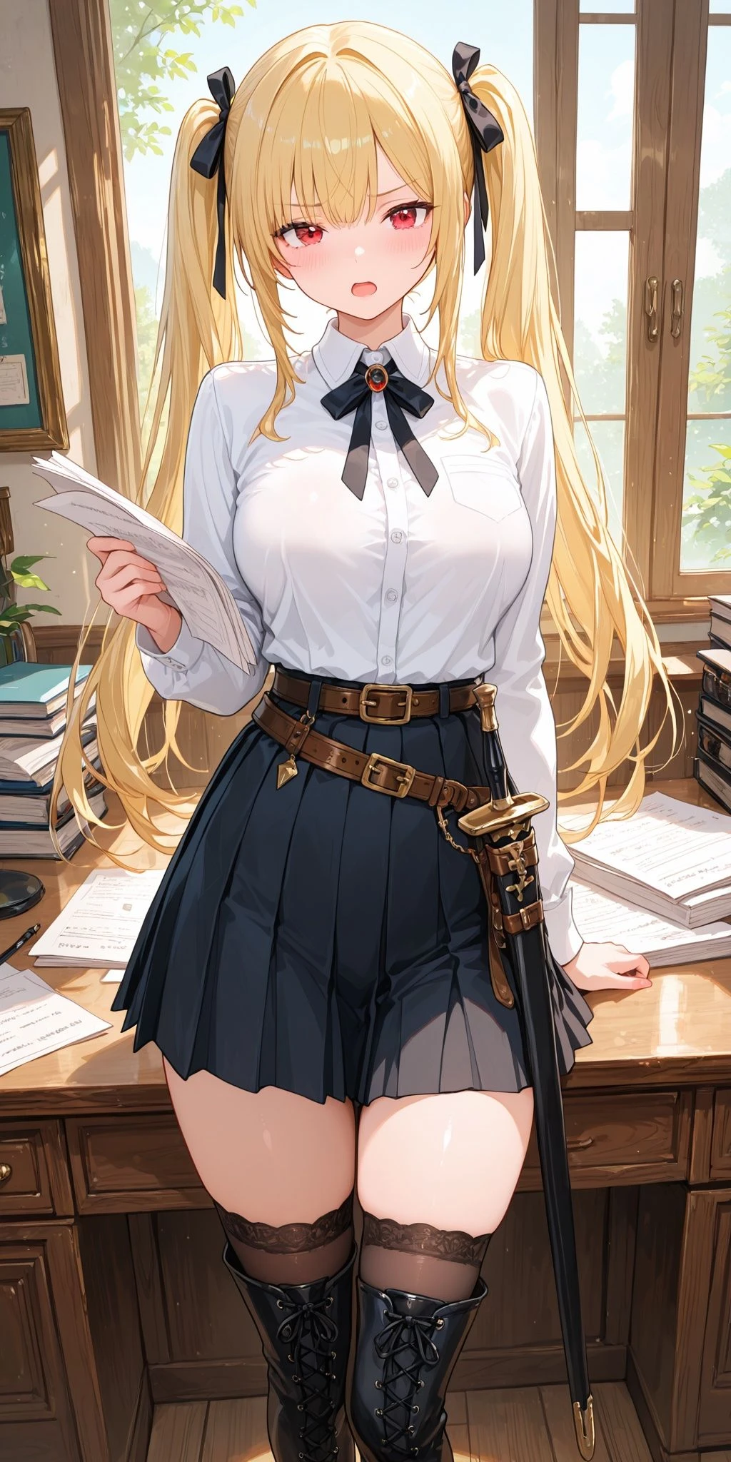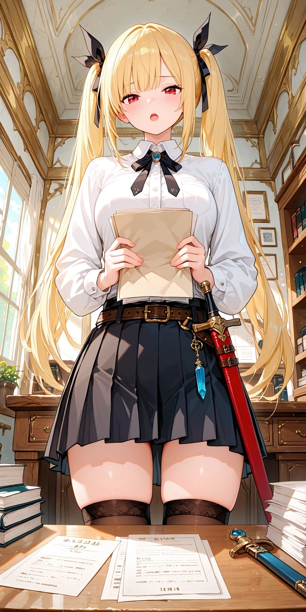 振り返らずとも分かる。 金色のツインテール、黒を基調とした近衛の装束。無駄のない歩き方と、剣を携えた者特有の気配。視線を向ければ、必ずこちらを見ている――そんな距離感の少女だ。