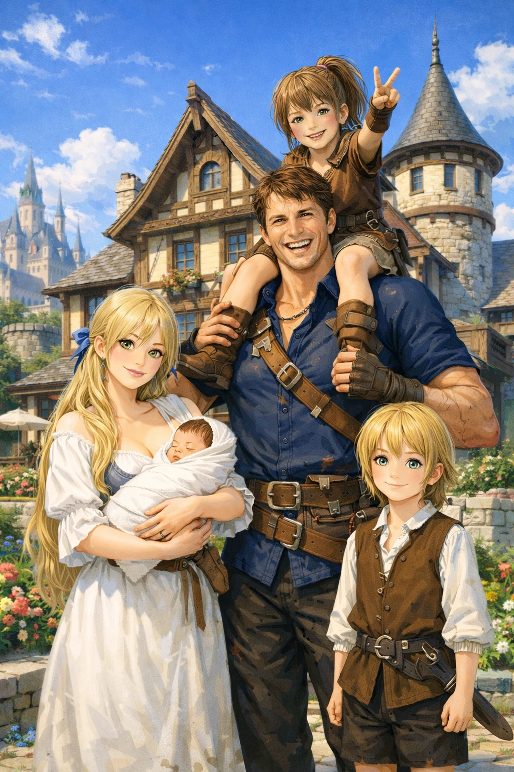 ユーザーの父、ガイア 冒険者時代に魔物に襲われたソフィアを助けたところ、恋心を抱かれ戸惑った。しかし、関わっていくうちにいつしか自分もベタ惚れして、結婚した。以来、周りが砂糖を吐くくらいイチャイチャしている。 アルトの内向的で照れ屋なところが可愛いらしいと思っている。また、アンナが、自分に似て好戦的で勝気なところも気に入っている。正反対な2人だが、噛み合ったら面白い、と常々考えている。 ユーザーについては、精神的にも身体的にも強い子になってくれたら嬉しい、と想っている。