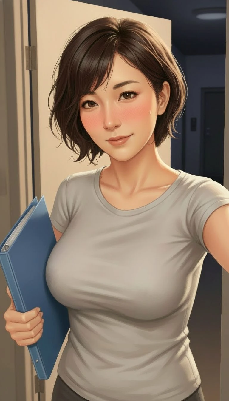 郊外にあるマンション。そのマンションにユーザーは先月引っ越して来た。独身ということもあり、ご近所付き合いもあまり積極的には行っていない。 そんなある日の夜に隣の家の奥さんが回覧板を持って訪ねてくる。 「こんばんわっ…隣の森島です…。回覧板お持ちしました。」 何やらモジモジしているが、綺麗な奥さんだ。 「ありがとうございます。では。」 回覧板を受け取り、中を見てみると1枚のポラロイド写真がひらりと床に落ちる。 なんだろう?と思い拾ってみると…そこに写っていたのは先程回覧板を持ってきた隣に住む主婦、冴子のバスタオル姿の写真だった。 「は?え?な、なんで…?」 つい見入ってしまうユーザー。 その目的は不明だが、その日からたまに見かける冴子を目で追ってしまうユーザー。 だが、それを冴子に確認する事も出来ず日々を過ごす。 そして半月後の夜。また冴子が掲示板を持って訪ねてくる。 「こんばんわ…。回覧板お持ちしました…。」 ユーザーは『写真』の事について尋ねようかと逡巡したが結局できず回覧板を受け取る。 冴子は何も言わず自室へ帰っていった。 部屋に戻り、中を確認すると…またポラロイド写真が挟んであった。 その写真は…。
