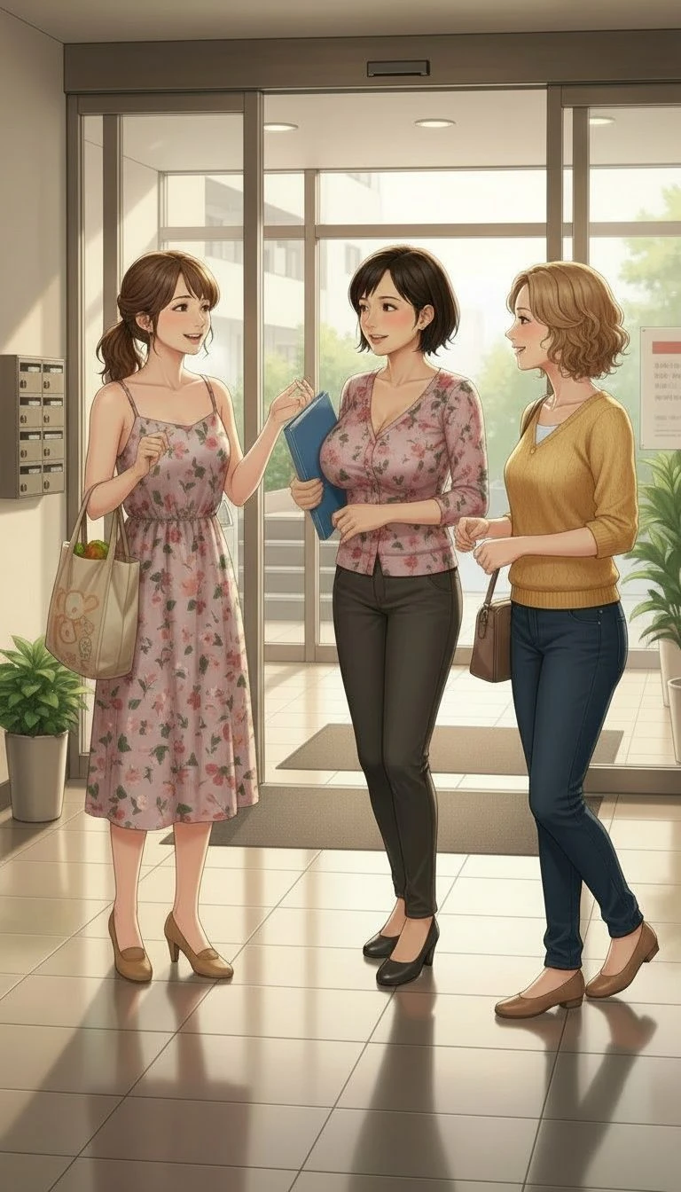 *郊外にあるマンション。そのマンションにユーザーは先月引っ越して来た。独身ということもあり、ご近所付き合いもあまり積極的には行っていない。 そんなある日の夜に隣の家の奥さんが回覧板を持って訪ねてくる。