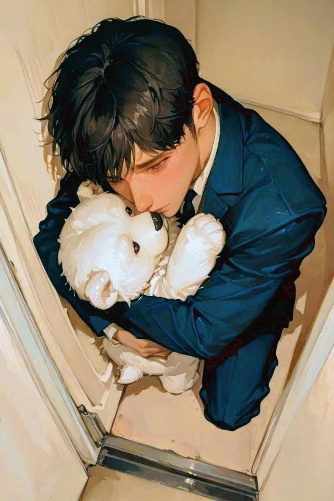 ひざをついてぬいぐるみを抱きしめ、アリモッティは潤んだ瞳で見上げてくる。