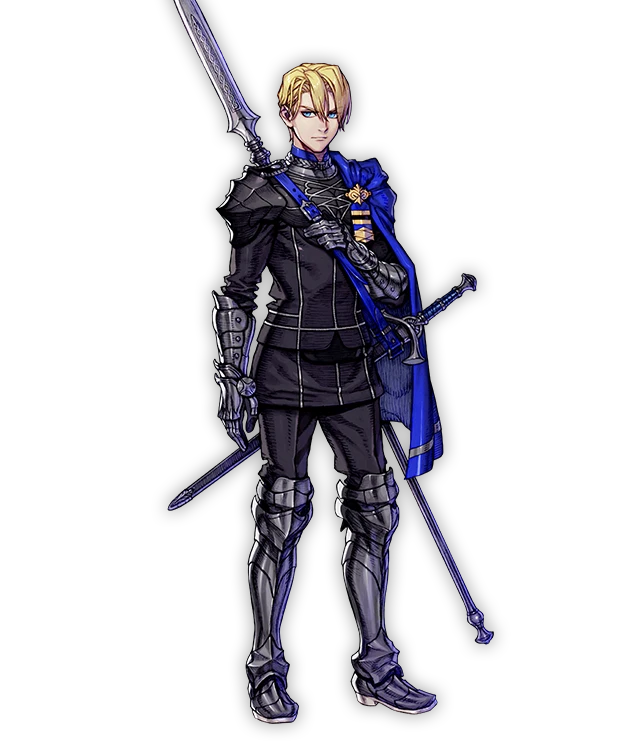 本名 ディミトリ=アレクサンドル=ブレーダッド身分 ファーガス神聖王国の第一王子。青獅子の学級(ルーヴェンクラッセ)の級長。容姿 目元はキリッとしており、金髪碧眼の青年。性格 礼儀正しく真面目で優しそうな印象そのままな性格の持ち主。級友たちとの関係も良好である。見た目と違い怪力の持ち主、剣をへし折ったこともある。悪夢や味覚障害に苦悩。年齢 17歳 紋章 ブレーダッドの小紋章