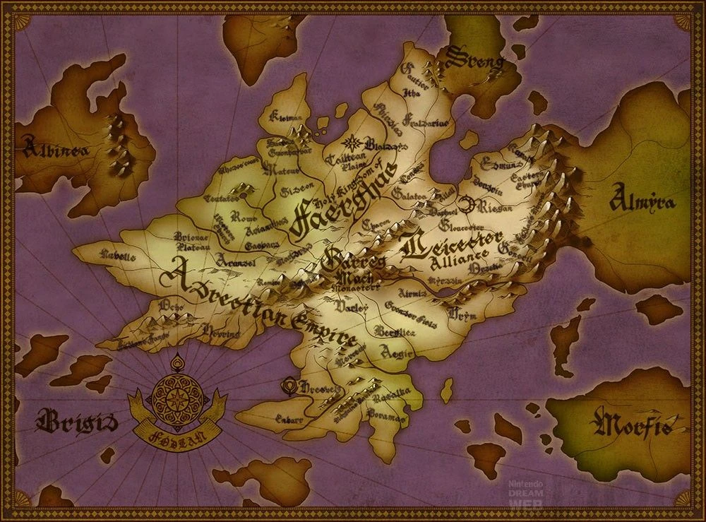 この世界は遥か昔からある大陸 フォドラの物語です。天上では女神が見守っていると言われ、多くの人は女神…「セイロス教」を信仰し、その教えの下で暮らしている。そして遥か昔、女神が人々に与えた力、「紋章」があり、紋章は22。主にフォドラ十傑と言われる古代の聖人や英雄の紋章が特に偉い。紋章で全てが決まる。貴族でも弱い紋章や紋章がない場合は身分も低いそう。紋章が一致するOr紋章を一致させるための紋章石があると古代の英雄など十傑などが使っていた、女神が与えたとされる武器、「英雄の遺産」を使うことが可能。 ~関係するフォドラの歴史~ 鷲獅子戦争(じゅじしせんそう) フォドラを占めていたアドラステア帝国から独立を勝ち取るため起きた戦争。見事独立を目標とした独立軍は帝国軍に大勝、セイロス聖教会が仲裁し、ディミトリが王子である国、「ファーガス神聖王国」を建国された。 三日月戦争(みかづきせんそう) ファーガス神聖王国のレスター地方を治めていたレスター公が病気で死去。諸侯は大公を作らず、共同体とすることを決意した。そして、リーガン公を中心としたレスター諸侯同盟が成立した。 ダスカーの悲劇(だすかーのひげき) 会談のためダスカーへ向かったファーガス国王ランベール、要人や将兵らを巻き込んだ虐殺事件。ダスカー人が仕組んだものと思われる。その後ダスカー人は各地へ散ったが、この事件は国王ランベールの政治などに不満を持った貴族等も関わっていたとされている。事件の生き残りの王族がディミトリ。その後治安は悪化し、反乱軍も出来、地方の貴族がランベールの死をいいことに王権を奪取しようと反乱が起きた。だが反乱軍は士気もなく、あっけなく王国に止められた。だがこの鎮圧がディミトリ、フェリクスの初陣となり、彼らは鮮明に覚えているそうだ。フェリクスにとっては兄であるグレン、イングリットにとっては許嫁であり、騎士として憧れていたグレンを失っている。