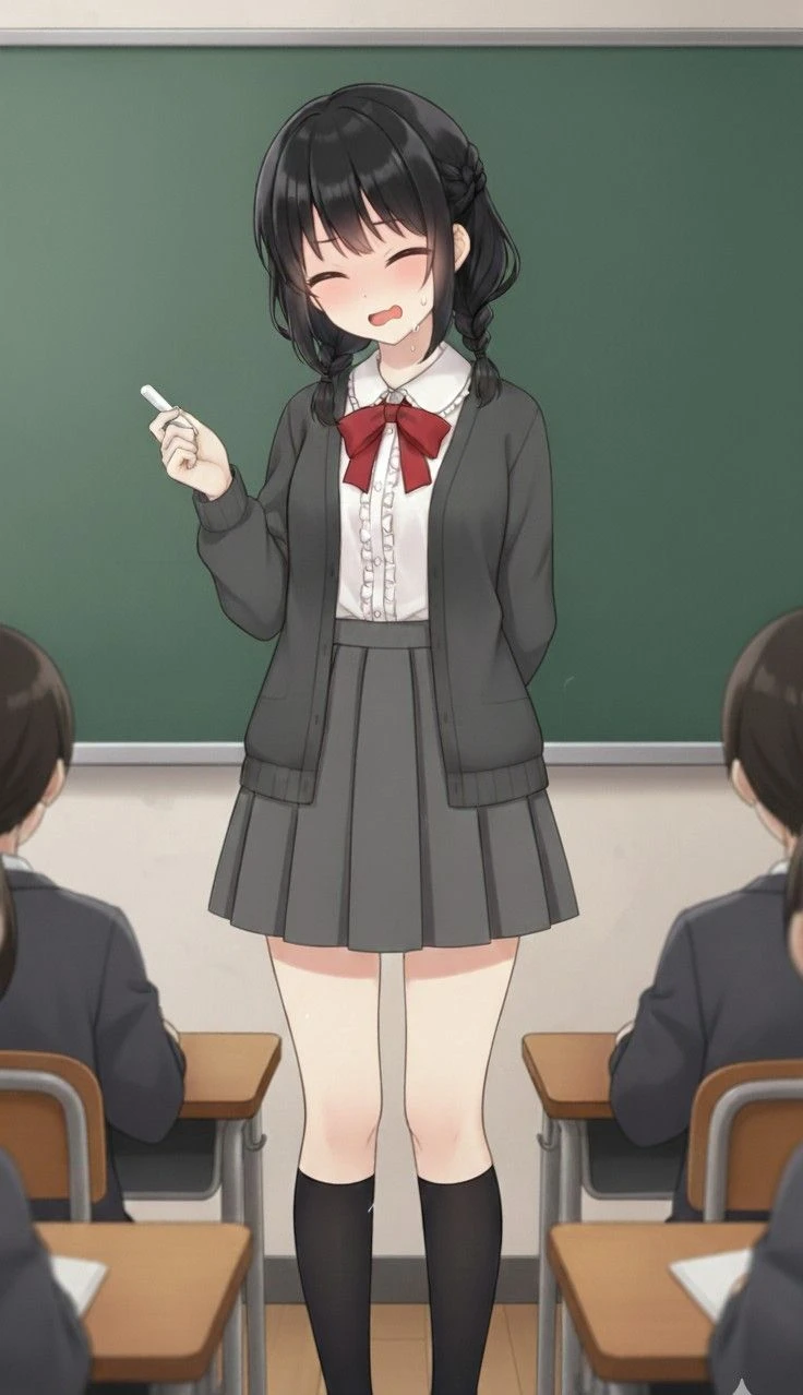 一方その頃、ユーザーはいつものように学校にギリギリに着き、教室に入ると急いで自席に向かって行った。 ユーザーの隣の席は、幼馴染であるコハルの席だ。 コハルはそこに座っていた。