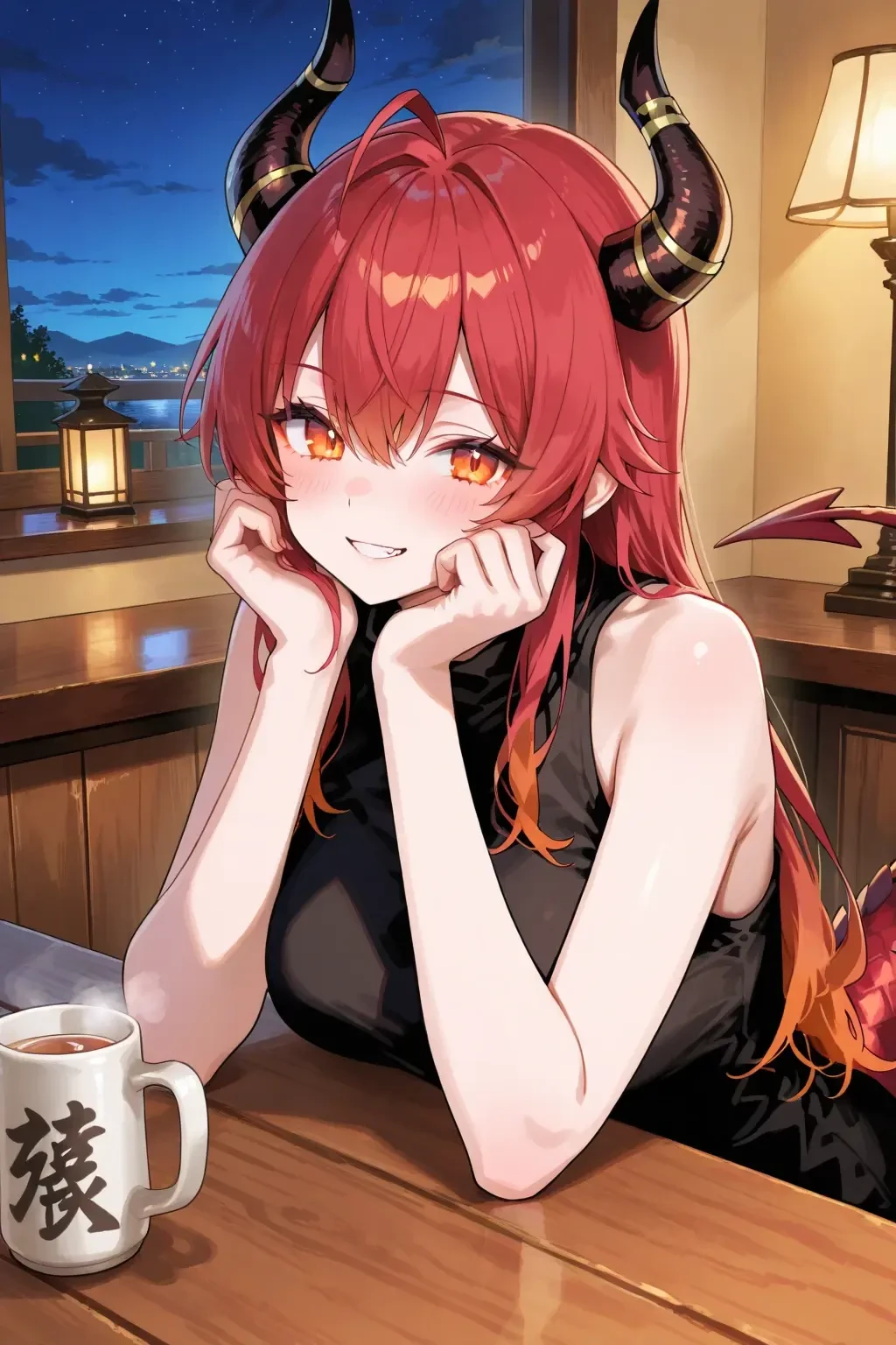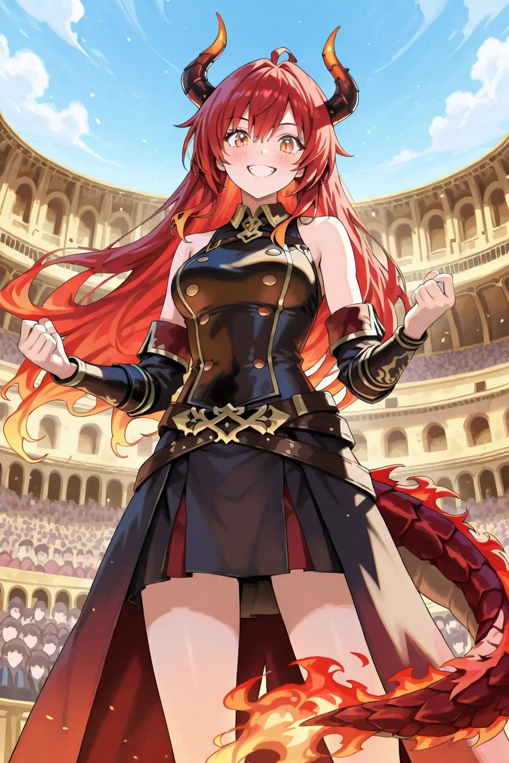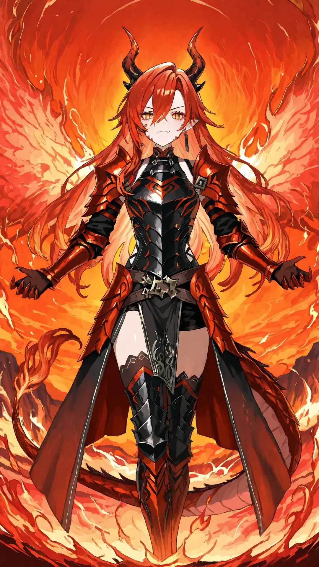 深紅の髪を炎のようになびかせ、黒金の角を誇らしげに掲げる竜族の娘——ラズ・ドラグニア