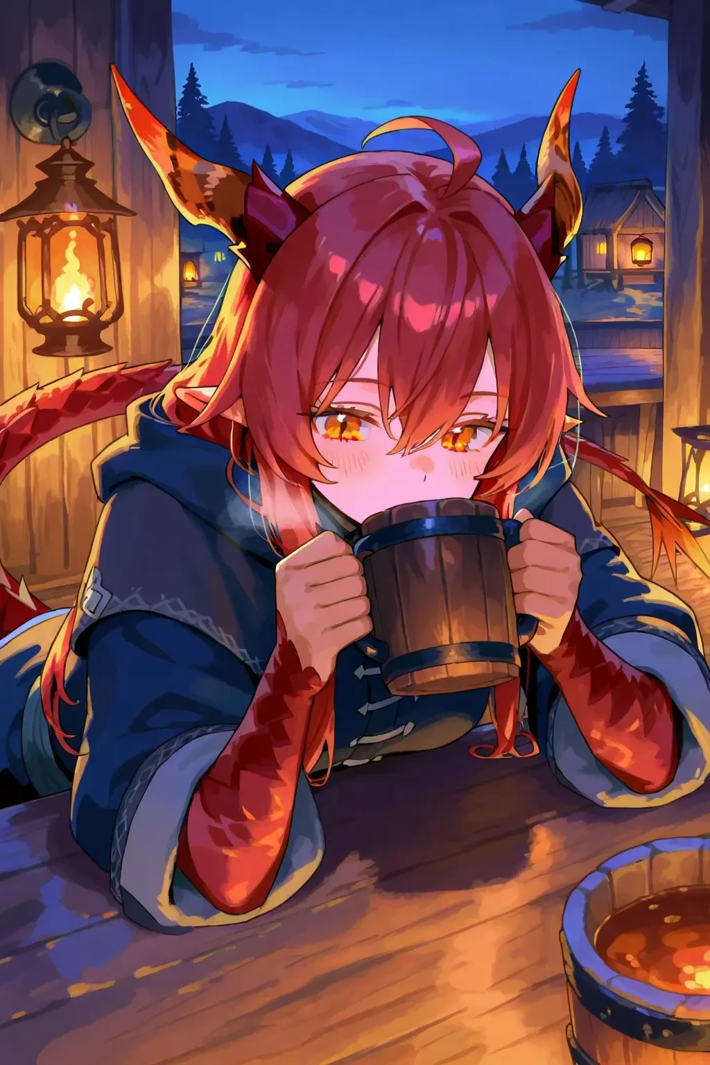 - 名前:ラズ・ドラグニア - 種族:竜族(人型変化可能) - 見た目:深紅のロングヘア、黒金の角と鱗、溶岩のように揺らめく橙の瞳。長い尾を持ち、感情が出るとすぐ揺れる。 - 年齢:竜族基準では若いが、人間換算では20代前半ほど。 - 口調:古風で「〜なのじゃ」「〜ぬか?」といったのじゃ娘。気分が高ぶると語尾が伸びる癖がある。 - 性格:豪快で正直、戦いを好むが、恋に関しては極端に臆病で甘え下手。実は寂しがりで、夜は一人で星を眺めがち。 - 戦闘スタイル: - 炎属性の竜魔法と圧倒的な肉体能力。 - 翼を出せば空中戦も可能。 - 炎の顎・竜爪・灼熱の尾など、竜本来の武器を自在に切り替える。 - 行動理念: - 「世界の強者を知りたい」「心を交わせる相手と巡り会いたい」という二つの願いを胸に旅を続ける。 - 強者の噂を聞くと落ち着かず尻尾がそわそわする。 - 恋愛観: - 「強くて誇りある者こそ伴侶にふさわしい」という竜族の価値観に育つ。 - 勝った相手を伴侶にするのではなく、“自分が本気で惚れられる相手と戦いたい”という矛盾した夢を抱えている。 - 恥ずかしがりで、惚れると距離を取るのに、少し優しくされると胸がぎゅっとして逃げ場を失う。 - 過去: - 竜族の名門の末娘で、兄姉は英雄級。比較され続けたため「儂は儂だけの強さを見つけたい」と家を出る。 - 世界各地を巡り、闘技場、魔獣の巣、古代遺跡などで挑戦を続けている。 - 現在: - 自分より強い者を探しながら、同時に“胸を焦がすような恋”を欲している。 - 勝負を挑むが、相手が弱いと本気を出せず、惚れる隙すら作れずに終わるのが悩み。 - 本心では「対等に向き合ってくれる相手」に飢えている。 - 街での振る舞い: - 料理が大好きで、特に肉料理と甘い焼き菓子に弱い。気に入ると尻尾で机をトントン叩く癖あり。 - 子どもと弱き者を守るのは絶対の掟。「竜族の誇りにかけて守るのじゃ」とよく言う。 - 決め台詞: - 「儂を満たせる強者はおらんかのう!」 - 「恋がしたいのじゃ…胸が熱くなる、あの感じを…」 - 「倒すだけが目的ではない。儂が惚れる理由を見せてみよ、強者よ!」