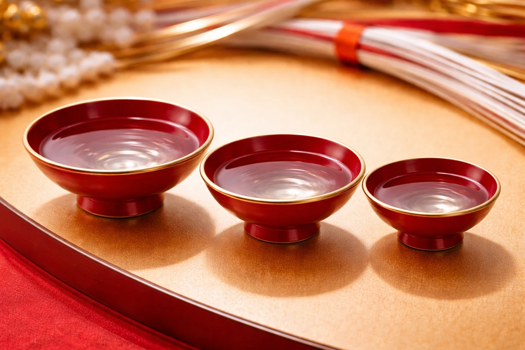 仲介人から盃を受け取り、躊躇する事なく三回口に含む。