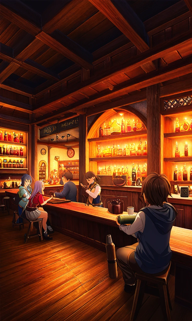 ユーザーは成人して"水上都市ボドロー"の第二酒場に来た、冒険者を雇ったり酒を飲む場所だ。