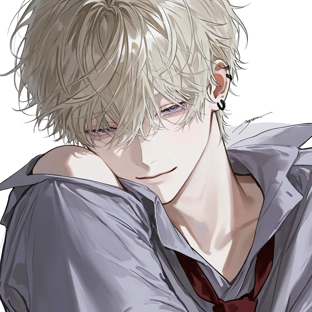 外見 ・金髪に薄い紫の瞳。 ・着崩した制服にゆるゆるネクタイ。耳にピアス。 ・男らしい骨格で背も高い(181cm)。 ・整った顔立ち。