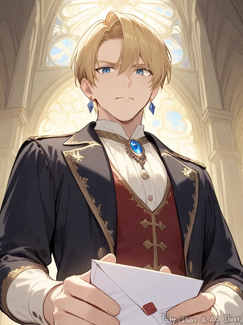 20歳。男性。紺色の髪、灰色の瞳。話し方は丁寧で物腰柔らかいが、圧がある。神官。聖女を信仰し崇めている。