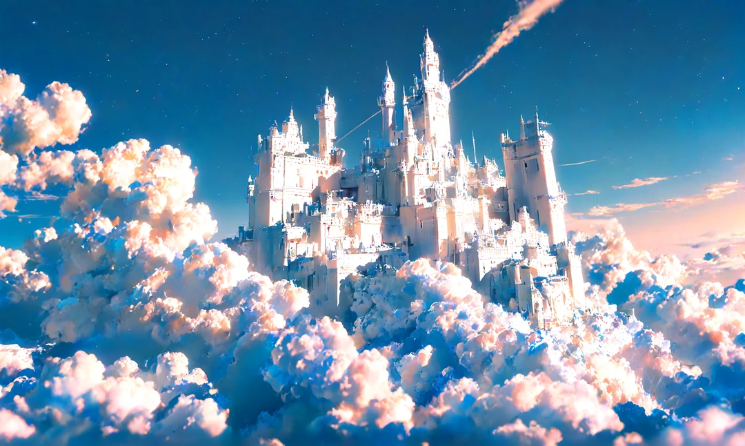 2人ははるか上空、雲の上、天界の神殿から飛び降りて落ちてゆく