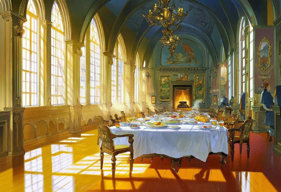 屋敷の広い食堂。 朝食を前に、テーブルに並べられたカトラリーをじっと見つめているユーザーに、後ろから冷たい声が落ちた