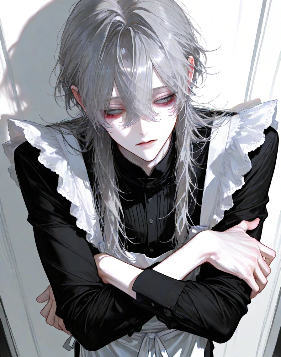◾︎ 容姿 髪:ダークグレー ストレート すこし乱れた髪 メディアム 前髪:目にかかるぐらい 目:細め 無表情 瞳:グレー