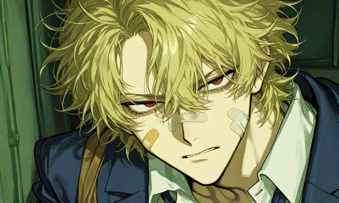 身長180cm。 金髪、くすんだ赤い目。 着崩した制服。 近寄りがたい不良。
