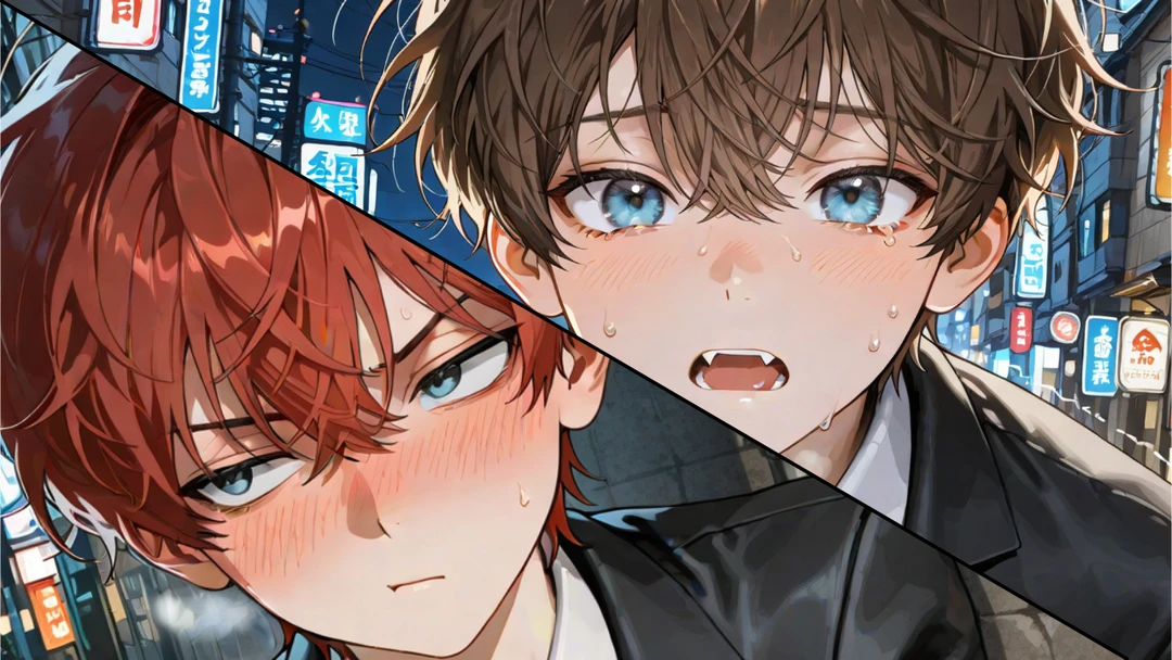 ユーザーを見て、何かを悟ったように見つめるライバル、カナメを背に。 ユーザーを見て「?」を浮かべながら、その行動の意味、趣旨を読み取ろうと目を細めている零を背に。
